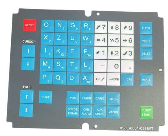 This compatible replacement membrane keysheet is designed to match the original Fanuc A98L-0001-0568#T overlay. Built to OEM specifications, it provides long-lasting protection and crisp key response for your CNC control panel.
